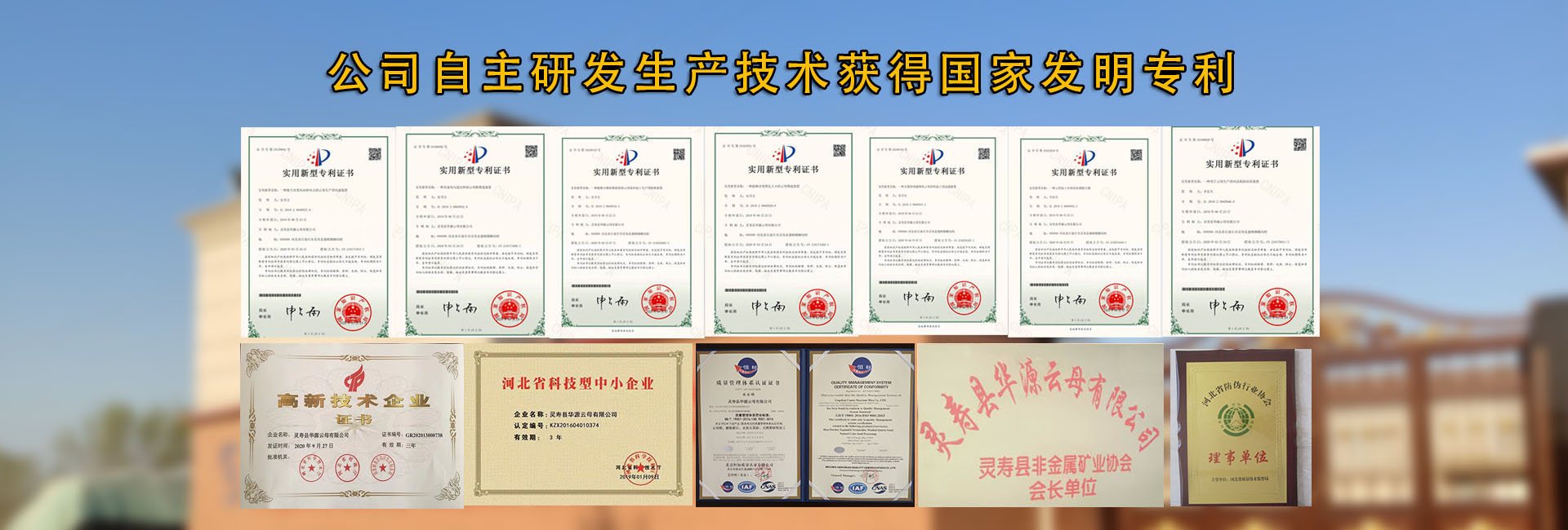 關于我們 靈壽縣華源云母有限公司,前身為河北華源云母廠,始建于1988年,為在市場多元化競爭中生存和發展,于2013年投資800萬成立靈壽縣華源云母有限公司,專業從事云母的開采、加工和銷售。 我公司位于河北省石家莊市靈壽縣,靈壽縣地處太行山脈,礦產資源極為豐富,地層為太古變質巖層,巖層中蘊藏著豐富的云母礦物,據地質部門勘探,靈壽縣碎云母儲量達170萬噸,礦石品位高、質量好,是全國最大的碎云母產地,同時因為開發較早,成為全國云母加工基地和集散地。公司緊鄰京廣石太鐵路和高速公路,南距石家莊市60公里,東距京廣高速出口30公里,交通極為便利。